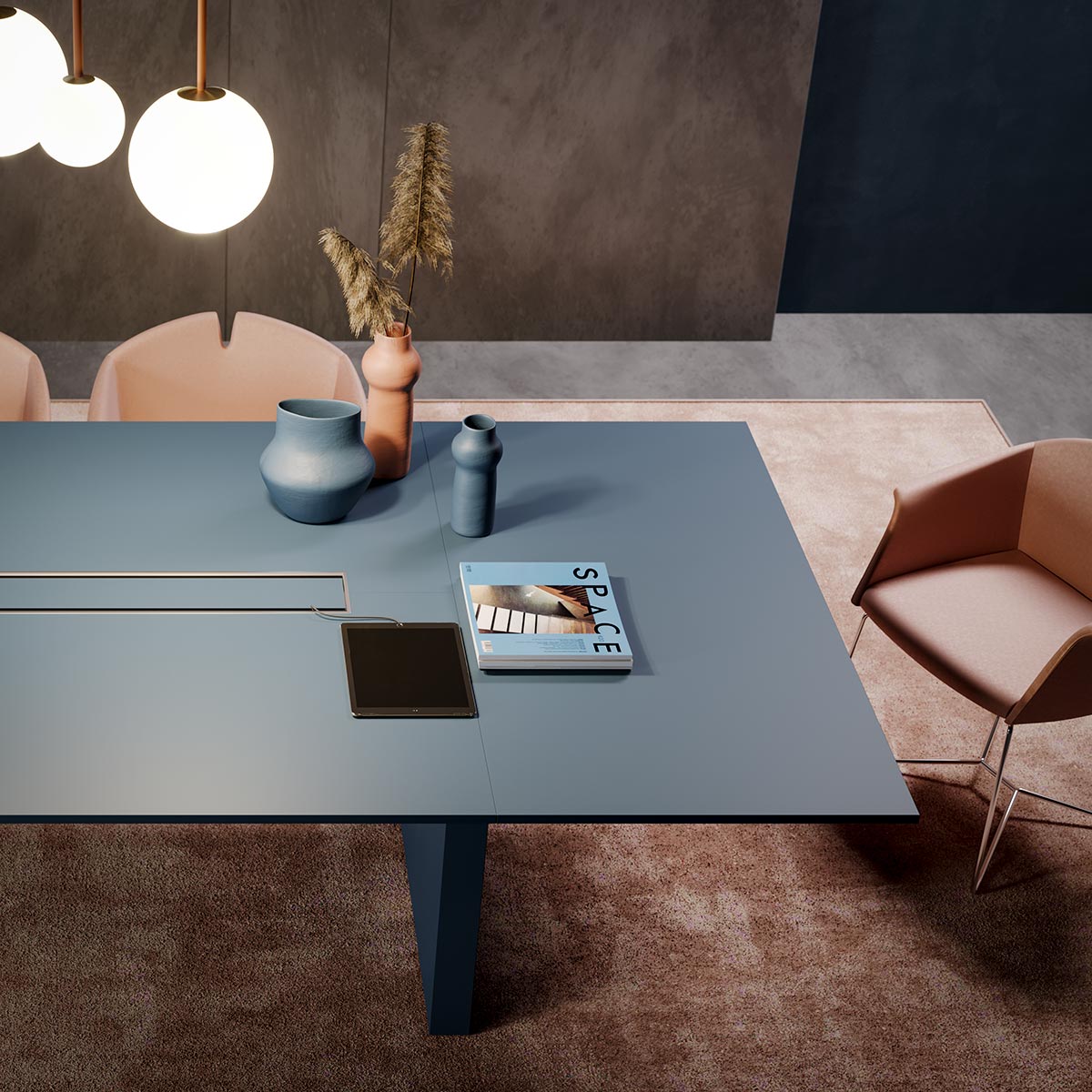 Fabriquée dans des matériaux de haute qualité, la table de réunion design SLIM est fabriquée en Italie et bénéficie d’une garantie de 5 ans. Différentes options d’électrification sont proposées avec des passe-câbles.