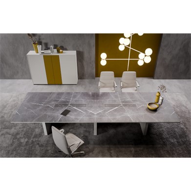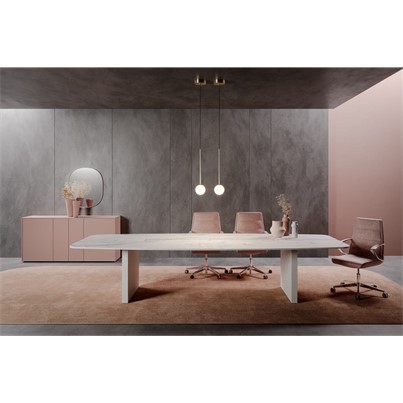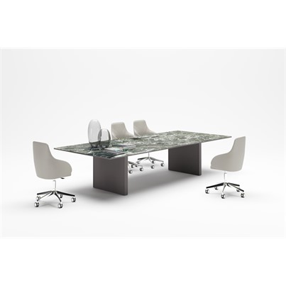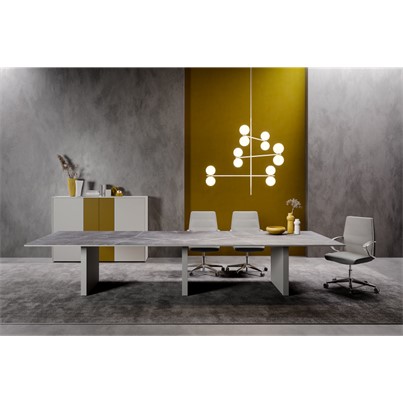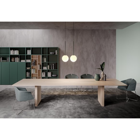 La table de réunion rectangulaire Slim est disponible en deux profondeurs (123/143cm) et plusieurs longueurs (de 220 à 580cm).